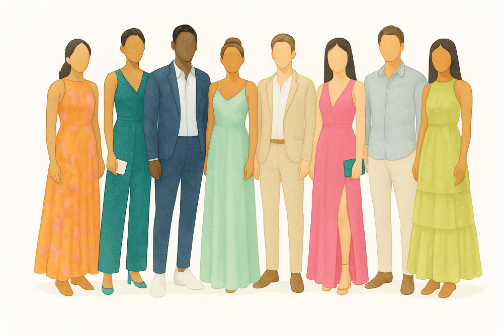 Para as mulheres que optarem por saltos, deem preferência por modelos confortáveis e de bloco, por exemplo. O local da cerimônia será em área de gramado.